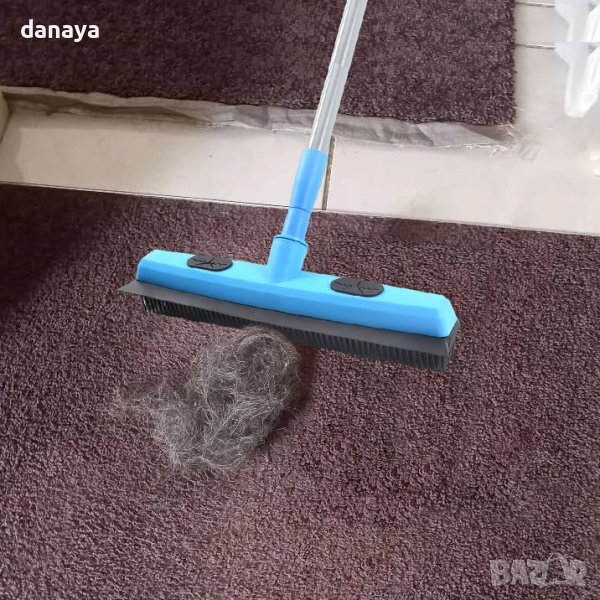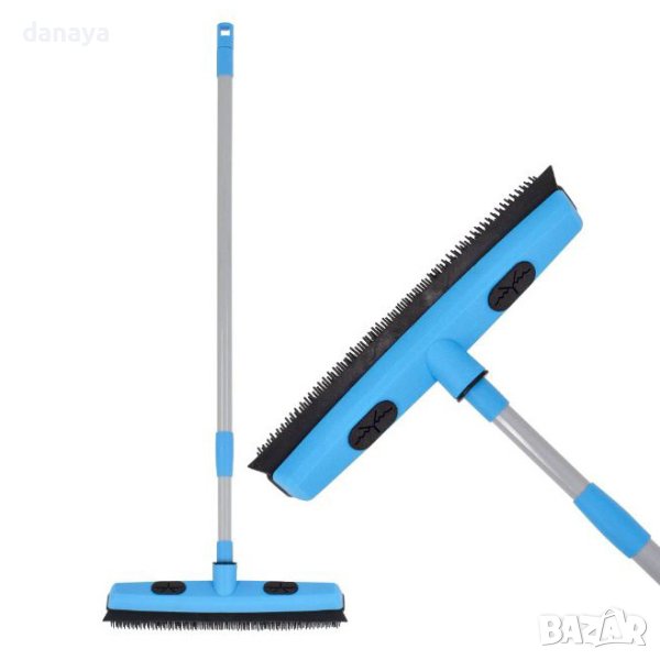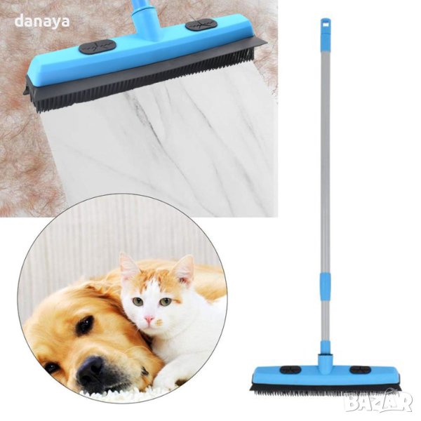 Каучукова метла за сухо и мокро почистване с телескопична дръжка. Обира косми и нечистотии от всякакви повърхности. Универсално приложение – Почиства мръсотия и козина на домашни любимци. Идеално почиства теракот, ламинат, килими, плочки, прозорци. Силиконовата метла се почиства лесно с вода и препарат. Телескопичната дръжка позволява да се регулира височината. Особено подходяща за домове с домашни любимци.