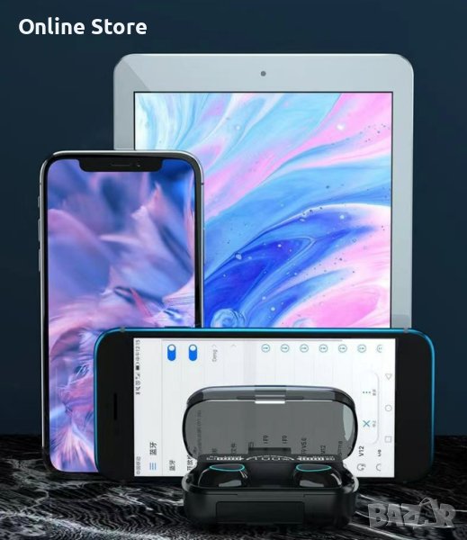 Безжичните слушалки Bluetooth 5.0 са проектирани за любителите на музиката, дългите разговори, спорта и пътуванията. Чувствителни на допир и с бърза точка за достъп, може да слушате музика с часове. Удобните безжични слушалки са със стерео звук. Иновативна Bluetooth 5.0 технология, устойчиви на силно изпръскване с вода – перфектни за всеки спортист, шофьор или просто любител на музиката. С Powerbank кутия за зареждане, съхраняваща дългия живот на батерията. Изцяло безжични, насладете се на пълната свобода без да ограничавате движенията си докато тичате, правите фитнес, пътувате и всекидневие. Връзката чрез Bluetooth се поддържа на разстояние до 10 метра (без препятствия). Страхотната функция за заглушаване на външните шумове, ви позволява да се съсредоточите върху любимата ви музика където и да сте, а вграденият микрофон дава възможност да провеждате хендсфри разговори, когато ви търсят или вие се обаждате.