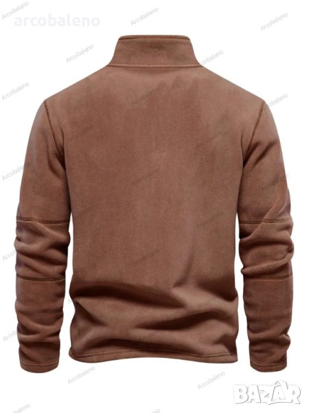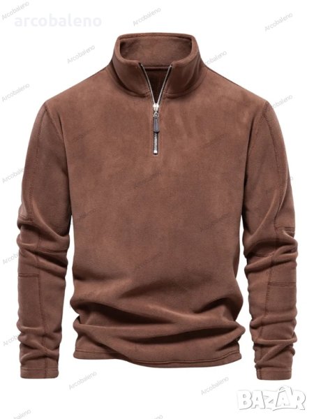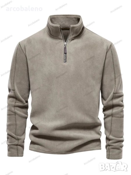 Мъжки едноцветен суичър с полар, дълги ръкави и половин цип, 3цвята