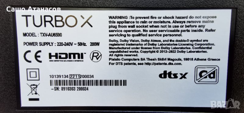 Модули от телевизор TURBO X TXV-AU6590 със счупена матрица (панел VES650QNTL-N2-N42 )