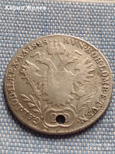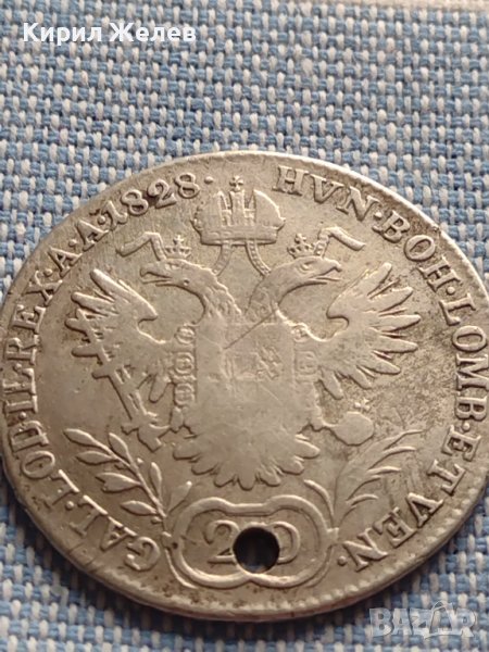 Сребърна монета 20 кройцера 1828г. Франц първи Виена Австрия 23919