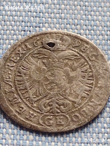 Сребърна монета 3 кройцера 1698г. Леополд първи Прага Свещена Римска Империя 13796 → Обява 42899978