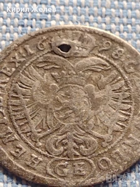Сребърна монета 3 кройцера 1698г. Леополд първи Прага Свещена Римска Империя 13796