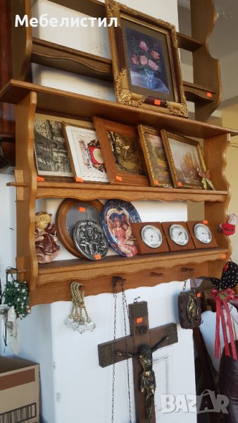 Рафт, полица, етажерка. С място за закачане. Масивно дърво. Размерите са както следва височина 85см. Ширина 87см., дълбочина 14см.