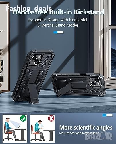 Нов Черен Кейс за телефон iPhone 15/14/13 Противоударен с Протектор за екран Айфон Защита