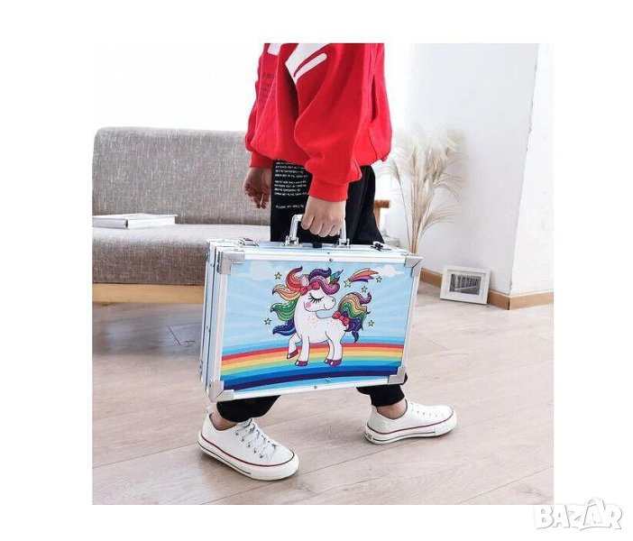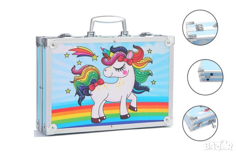 Комплект за рисуване и оцветяване в метален куфар Еднорог /145 части/. → Обява 42902376