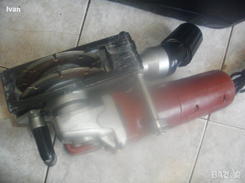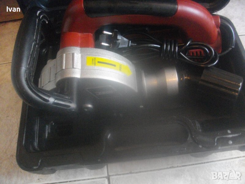 ОПИСАНИЕ на каналокопка в куфар - цена 299 лв. Професионална фреза за прокопаване/копаене на канали в стени/подове/тавани за полагане на тръби и окабеляване. Немско оригинално произовдство 2015 г. . Марка и модел XCEED EX 132W. Positec Germany GmbH Koln. Мощност на мотора - 1320 вата, скорост 9000 об/мин. Запазн външен вид. Почти нова. ЗАБЕЛЕЖКА по теехн.работно състояние - машината тръгва и работи много добре, силна и мощна е, без никакво искрене от нива четки/ротор/статор, без никакви смущаващи вътрешни шумове по време на пуск и спиране. Забележката е, че след като се пусне и работи, машината изклчва сама след 20-30 сукудни и трябва отново да се натисне пусковия спусък, след което работи отново кратко време и отново изключва и за да работи, трябва отново да се натисне спусъка. Предполагам, вътре терморегулатора не е в ред и затова изключва. Каналокоопката е за дискове размер ф 125 мм. Поставени на машината 2 бр. оригинални диамантини, почти нови. Конектор на отпадъчен прах външен с поставена оригиналната тръба накрайник за скачване в строителна прахосмукачка или торба за прах. Ролков масивен стоманен водач отдолу на машината за лесно приплъзване по повърхност при работа.Ширина на копаене - 25 мм, с регулация през 5 мм, чрез изваждане на шайби между дисковете. Дълбочина на копаене - регулируема - до 35 мм. Горна предна масивна дръжка, широка и удобна за захват. Машината няма никакво искрене и няма никакви смущаващи вътрешни шумове. Наличие на оригиналния твърд пластмасов куфар на модела, с размери 400 х 220 х 300 мм /вис/. Тегло само на машината - 4,5 кг. Тегло с куфара - 6,0 кг. Цената от 299 лв за тази каналокопка е крайна и твърда /с куфара/.