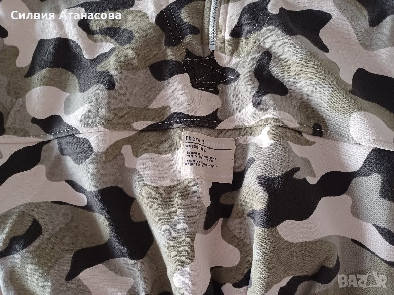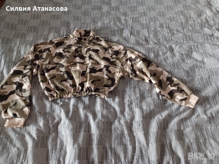 Блуза ватирана къса с широк ръкав, камуфлаж, с цип и висока яка, размер S, нова, без никакви забележки.