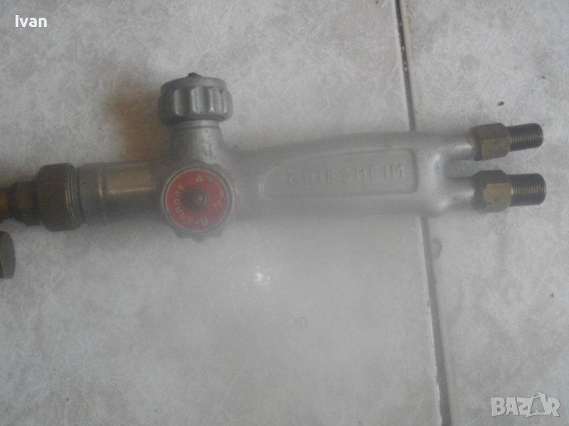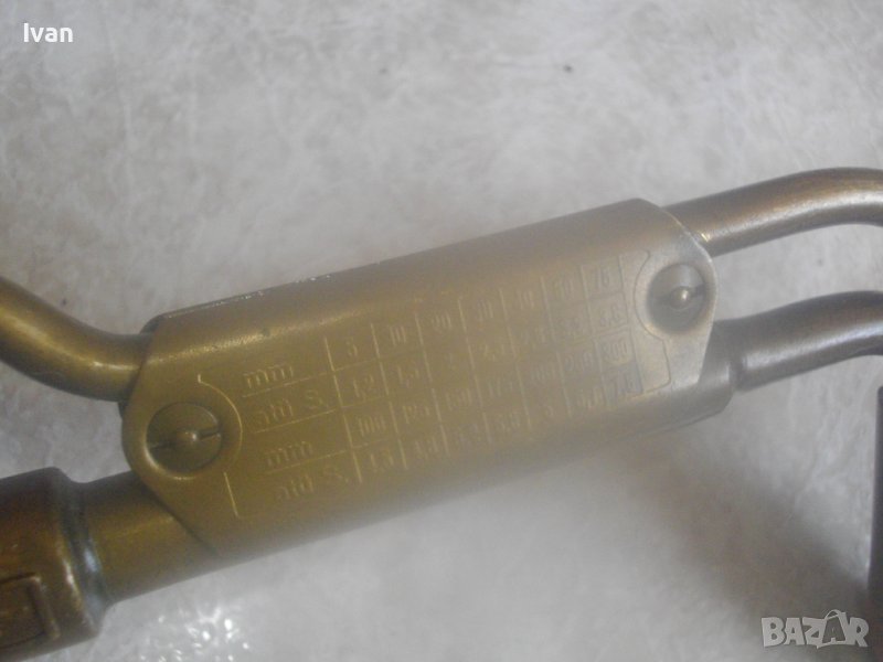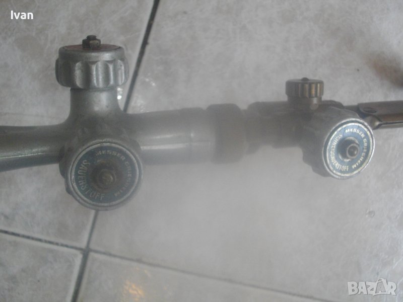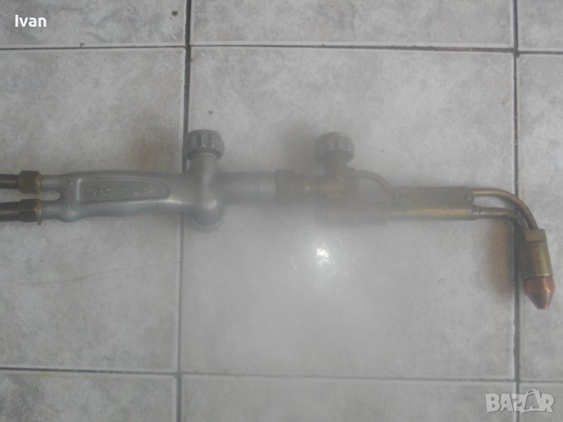 ОПИСАНИЕ на резак за оксижен за газо-кислородно-ацетиленово рязане/заваряване - 47 см. Цена 259 лв. Марка MESSER GRIESHEIM. Профсионален. Съвсем нов, неизползван и неупотребяван. Дължина с оригинални щуцери бронзови - 47 см.Алуминиева дръжка ръкохватка, бронзово рамо, поставена оригинална медна контактна дюза голяма с 1 дупка за пламъка.4 спирателни крана - 3 алуминиеви, 1 бронзов. Отлично състояни на инструмента. Тегло - 2,0 кг. Отпред на рамота е поставена фабрична бронзова табела под форма на таблица за препоръчваните размери дюзи при различна работа.