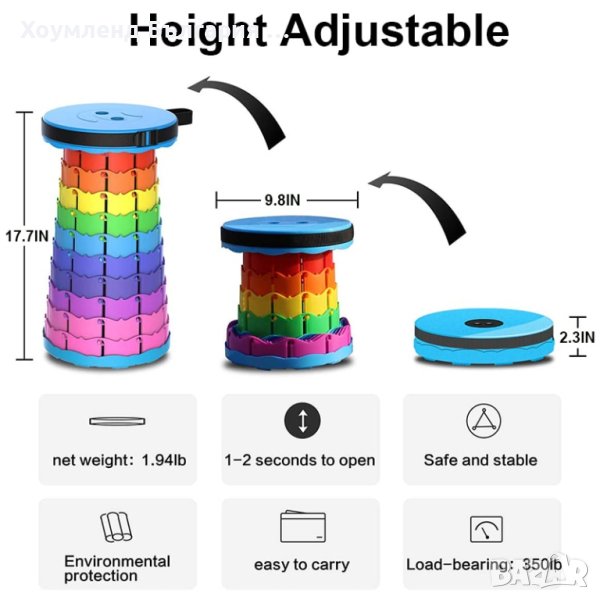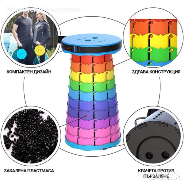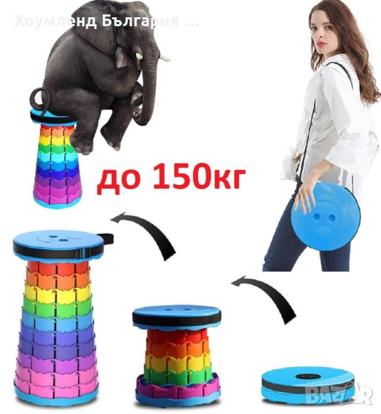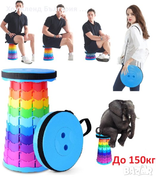 Стабилна сгъваема табуретка до 150кг тип чанта