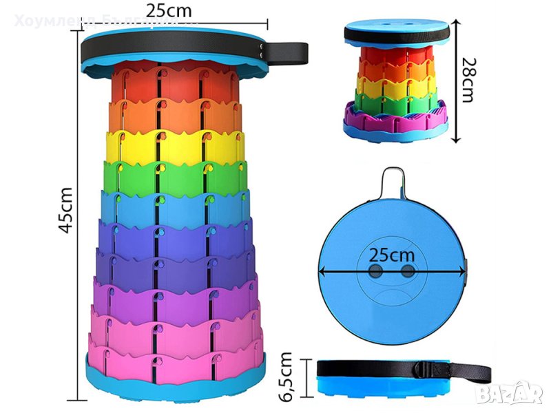 Табуретката може да се сгъне компактно под формаата на чанта за лесно пренасяне.