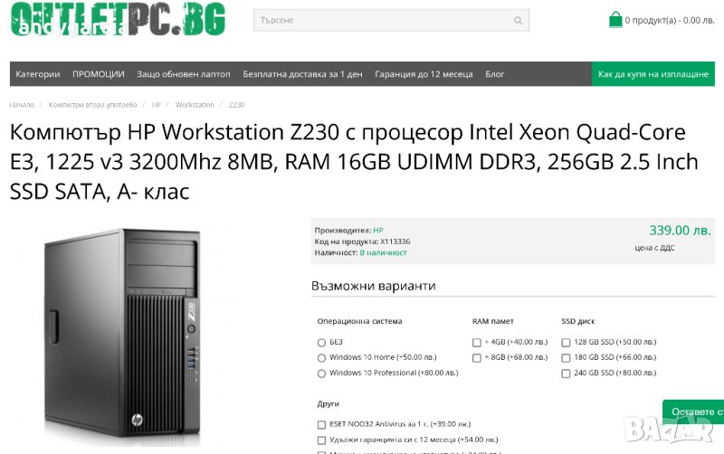 Продавам работна станция HP Z230 с най-високи параметри.
