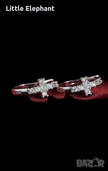 Сребърни обеци халки с кръстове,цирконии,white,колекция"Faith"/нови → Обява 42905381