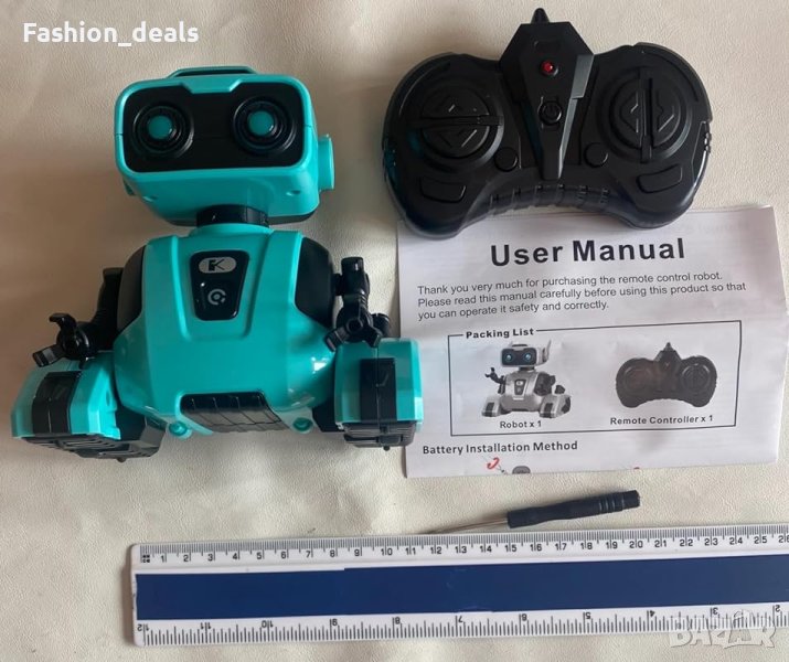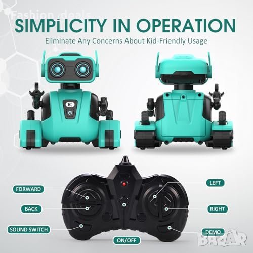 - Интерактивен робот с дистанционно и LED очи.Размери: 14x13x9 см