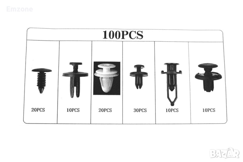Комплект щипки копчета за автомобил Универсални 100 броя