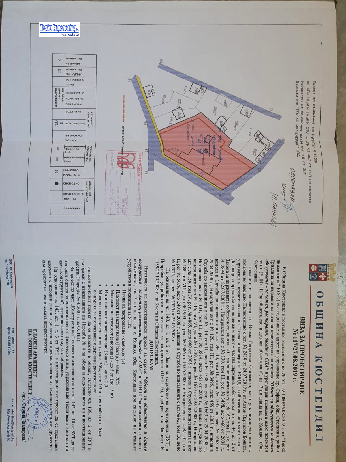 Имотът е с възможност за надстрояване на още три етажа до кота корниз-15м. -кинт2 площ на застрояване 70% -озеленяване 30% за ХОТЕЛ.