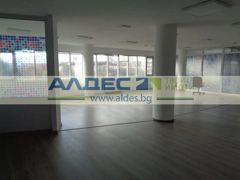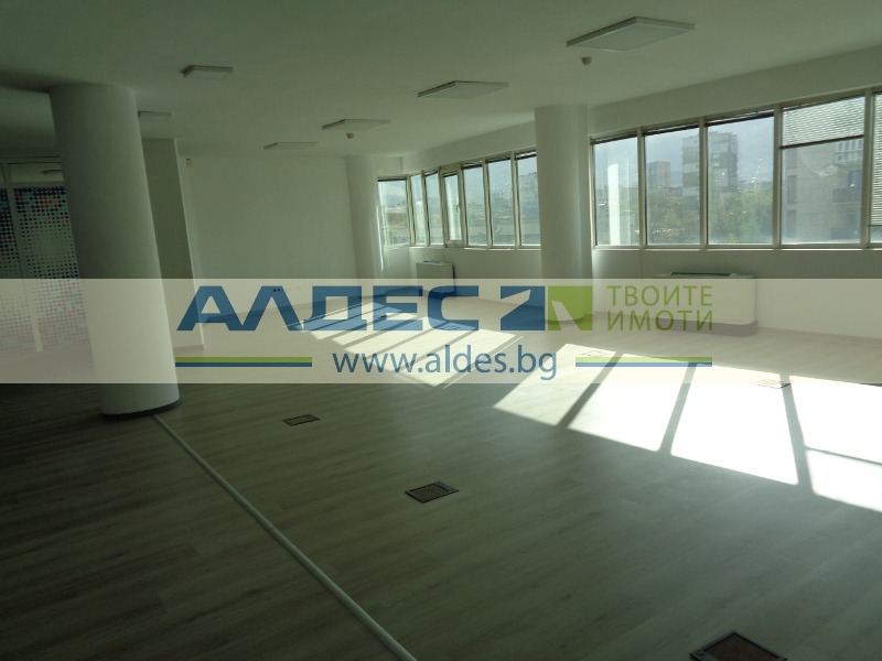 ПРОСТОРЕН ОФИС В ОФИС СГРАДА от 2000 г. с луксозни общи части и ПОДЗЕМНИ ПАРКОМЕСТА. Застроена площ - 280 кв.м. РАЗПРЕДЕЛЕНИЕ: 1 просторно помещение, пет работни помещения, кухненски бокс, два санитарни възела, тераса, сървърно.. ПОДОВИ НАСТИЛКИ: ламинат, теракота , латекс. ДОГРАМА: PVC. Офисът може да бъде и open space по желание на бъдещия наемател.Изцяло ремонтиран. Отопление и вентилация посредством конвектори свързани с централното отопление и чилър. На етаж има самостоятелен топломер и самостоятелен електромер. Автоматичен и ръчен температурен контрол. Окабеляването за телефоните и офис-техниката е вградено в кабелни канали с изводи в комуникационни кутии в пода. Отделни електрически вериги за компютърната техника и останалите уреди. Инсталирани са 25 чифта телефонни кабели на всеки етаж. Към офиса има и подземни паркоместа. Има подобни офиси на ет. 9-ти - 360 кв.м, 2-ри - 257 кв.м. Цената 8 E/кв.м без ДДС и без такса поддръжка, която е 2 Е без ДДС. ПОВЕЧЕ ПОДРОБНОСТИ И ОГЛЕДИ: 0893 410 397. Оферта 11343 Е.