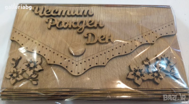 Дървен плик с надпис Честит Рожден Ден.
