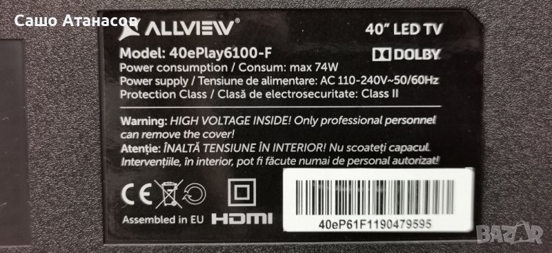 ALLVIEW 40ePlay6100-F със счупена матрица , 5800-A7M42G-0P00 , 5851-I32E20-1P10 , V400HJ9-PE1