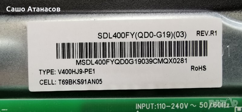 Модули от телевизор ALLVIEW 40ePlay6100-F със счупена матрица (панел SDL400FY(QD0-G19)(03) REV.R1 / V400HJ9-PE1 )