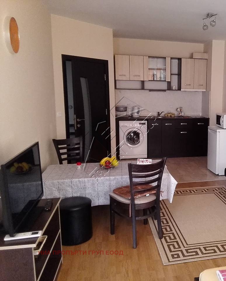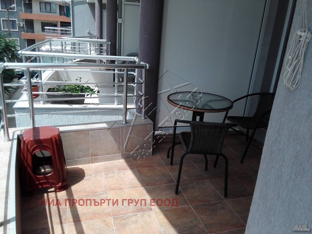 Жилището е с две отделни, непреходни стаи, обзаведени и оборудвани, със зони за сън и в двете помещения, вх. антре, санитарен възел и тераса. Имотът е ситуиран в старата част на кв. Сарафово, в близост до централни улици, плаж, море, магазини, аптека и училище. Намира се на непоследен етаж в нова тухлена сграда с асансьор, с частична гледка море и вътрешен двор.