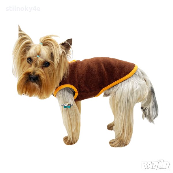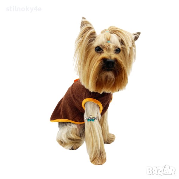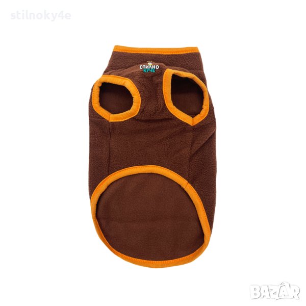 Поларена блуза за куче с тик-так копчета в кафяв и оранжев цвят.