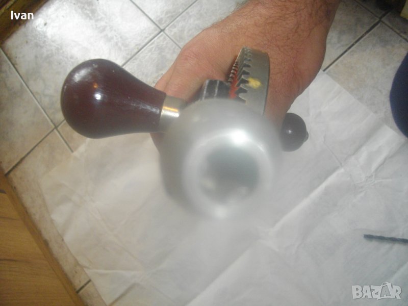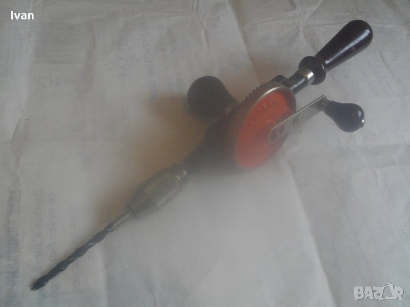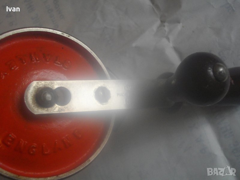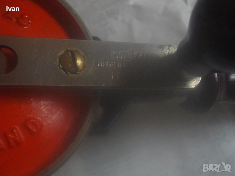 ОПИСАНИЕ на ръчна дрелка - маткап. Цена 99 лв. Английски оригинален марков инструмент. Марка/модел - STANLEY ENGLAND - Made in England № 803. Почти нов/като нов/трудно различим от нов. Колекционерски антикварен. Отлично техническо работно състояние. Много запазен външен вид, без охлузвания по оригиналната боя. Цялостна дължина 325 мм. Патронник - с хром покритие - захват до 8 мм опашка на свредло. Дървено покритие на дръжките. Оригинална къса странична дръжка. Бонус - нова поставена бургия/свредло за проба и тест. Цената от 99 лв е твърда и не подлежи на коментар за този инструмент.