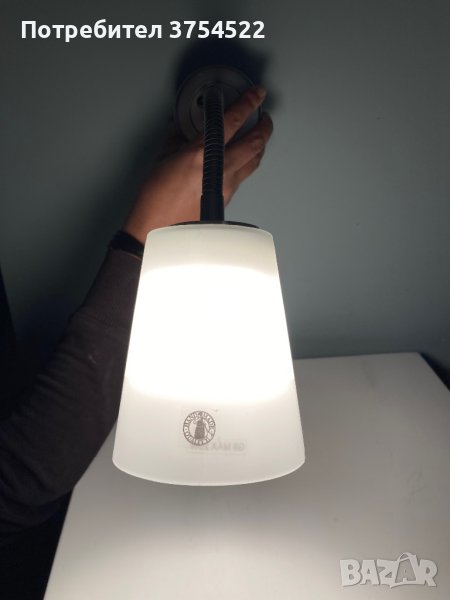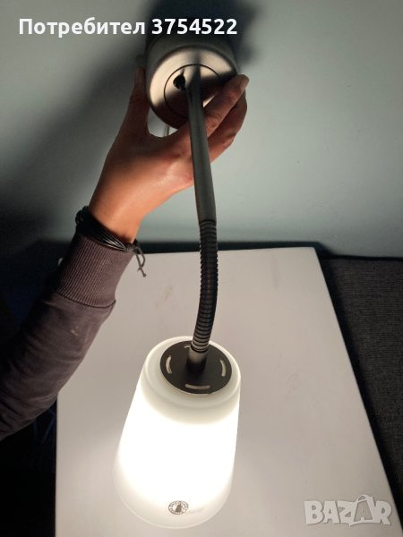Стенна лампа Ikea Basisk Wiebke Braasch #17796 Бяла. Лампата е с бял стъклен абажур във формата на камбана, както и с гъвкаво метално рамо което се завърта на 360 градуса.