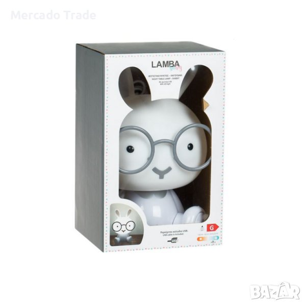 Нощна лампа Mercado Trade, Зайче с очила, 3 нива на яркост, USB, Бял → Обява 42923571