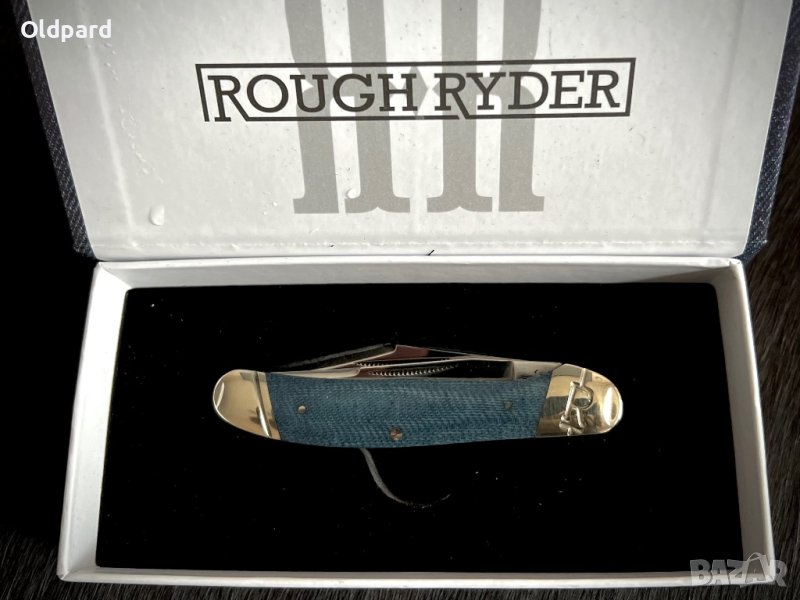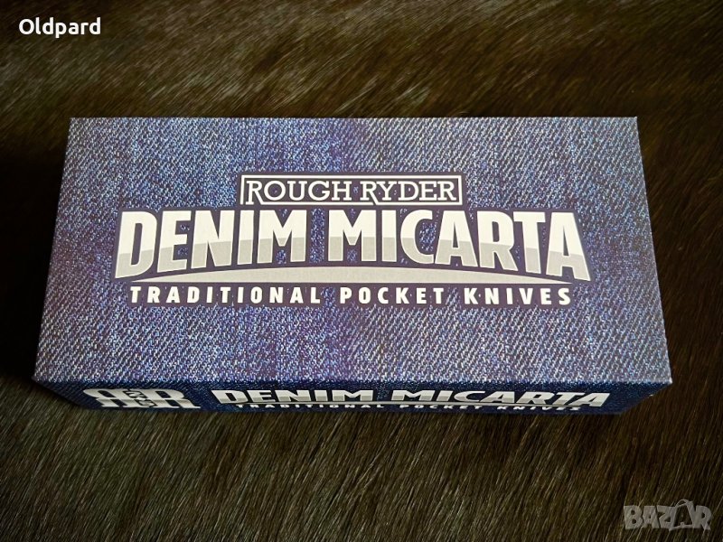 Сгъваем джобен нож RR Denim Copperhead. Две полирани остриета от неръждаема стомана 440А със сатенено покритие. Дължина в сгънато състояние 9.6 см. Дължина на острието - 7.1 см. Синя дънкова микарта дръжка. Кутия за подарък. Това е прекрасен и удобен нож за носене и използване всеки ден.