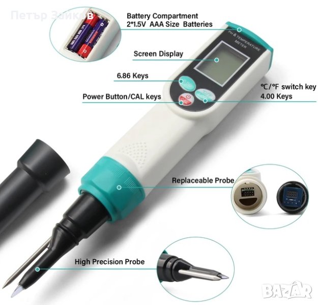 РН-метър на почвата с висока точност, цифров тестер за температура, сензор за киселинност на почвата, анализатор за засаждане на открито, градина, земеделска земя, 14.00pH