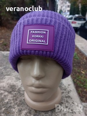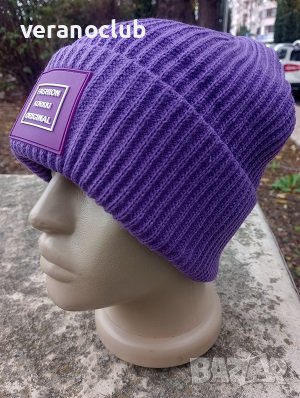 Свежа зимна плетена шапка от кашмирена смес. Силно еластично двойно плетиво със стилна кройка и в страхотен свеж лилав цвят.