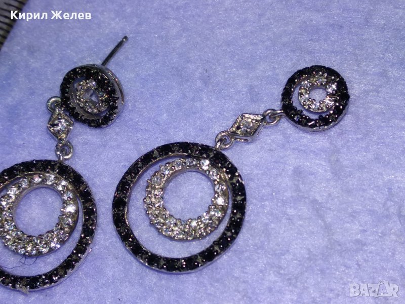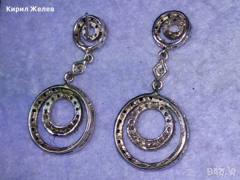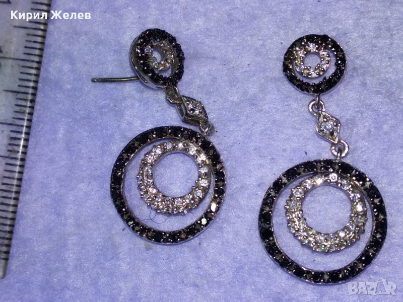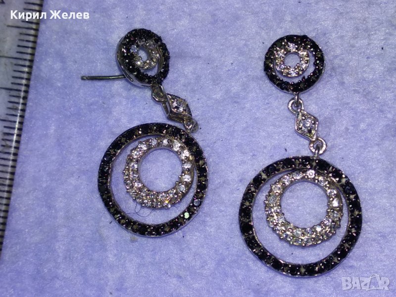 ЕФЕКТНИ ФЕШЪН СРЕБЪРНИ ОБЕЦИ РОДИРАНО СРЕБРО 925 с МАРКАЗИТИ и ЦИРКОНИ Едната е БЕЗ ЗАКАЧАЛКА! 40520