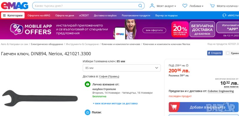 Обявната нетна цена е валиднa за лично получаване от адрес.The item net price listed is available for Export. (RevИСБ080925) #42929673;