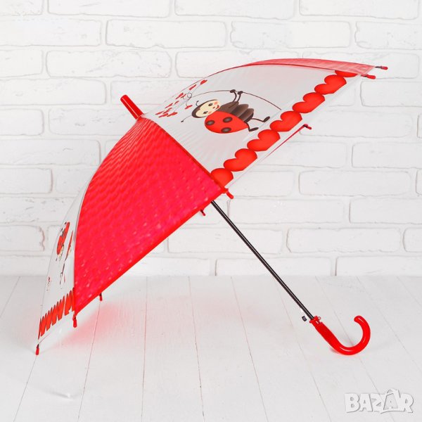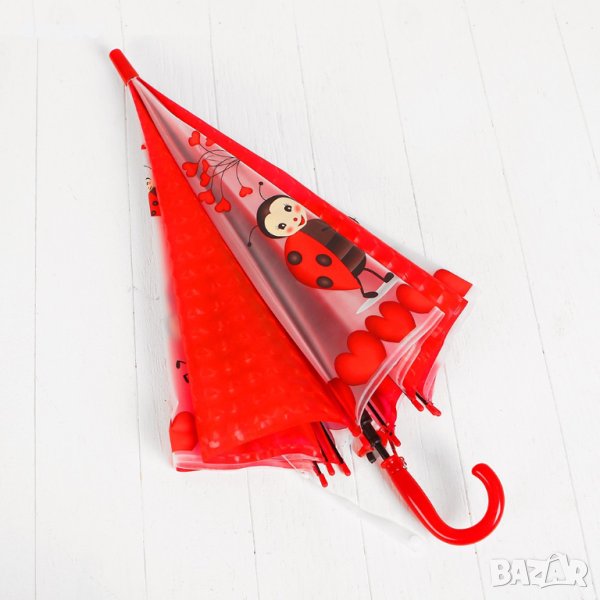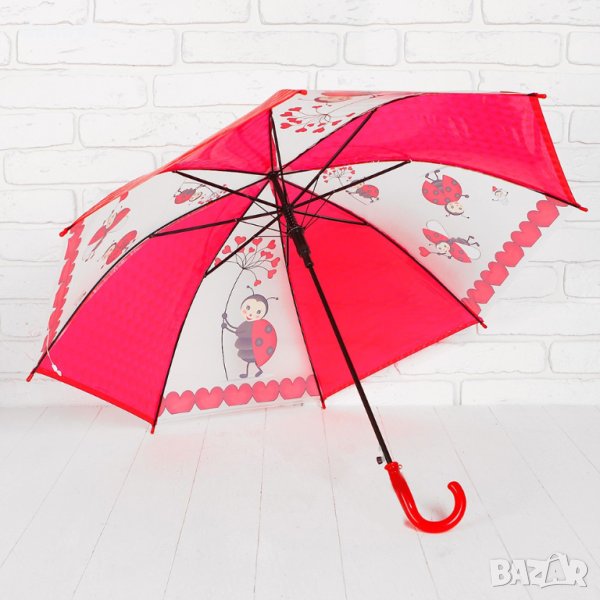 Симпатичен детски чадър за момичета с принт на весели калинки. Чадърът ще предпази детето от дъжд и няма да му позволи да се намокри в дъждовен ден.