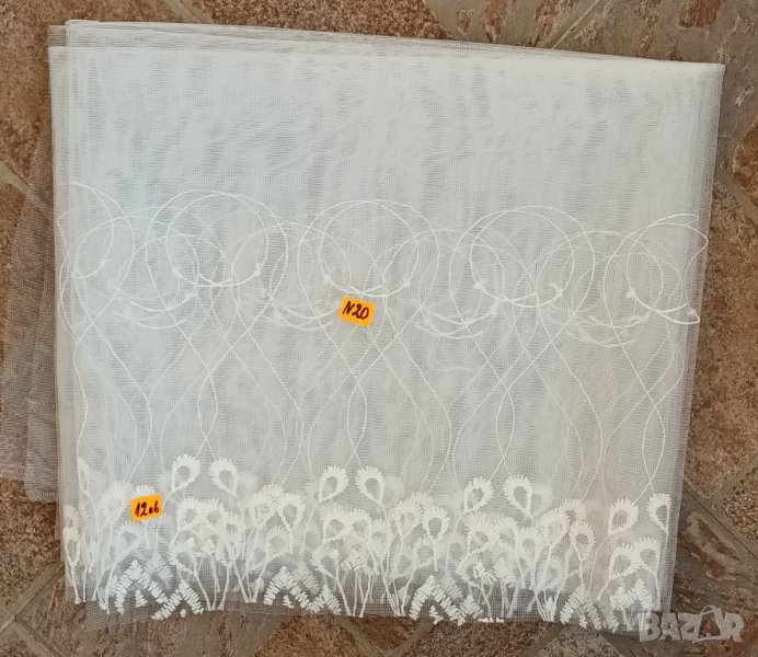 20. Бяло тюлено парче с бели бродирани ефекти дължина 2,72 м широчина 56 см цена 6 лвв.