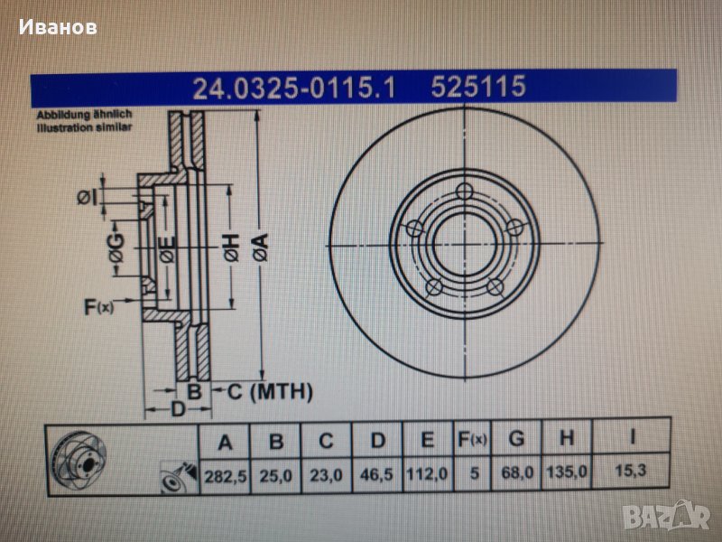 Цената е за 1 брой---АТЕ---24.0325-0115.1 Дисковете са нови размерите са --външен диаметър [mm] 282,5
