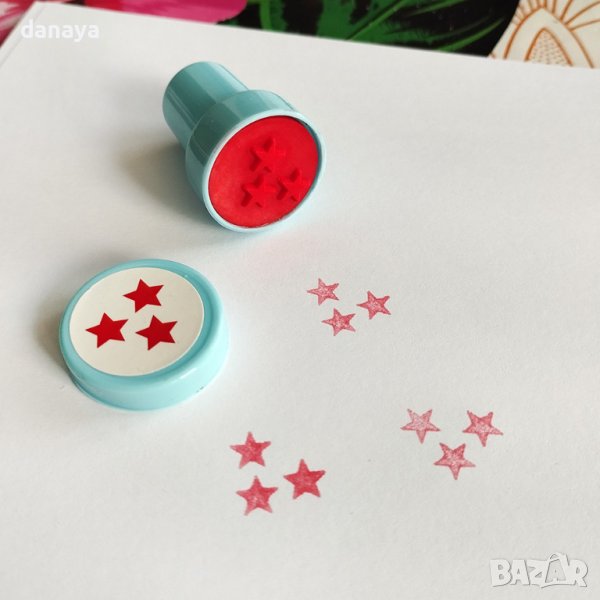 Цветни печати с форма на звездички, които се предлагатв 2 варианта. Всяко печатче печата в червен цвят.