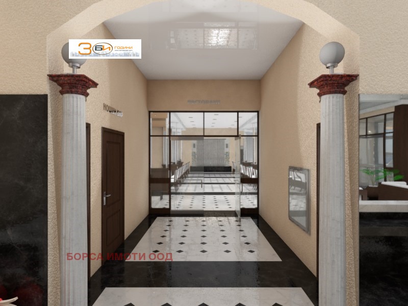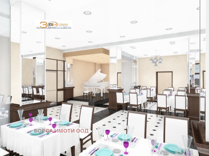 пелети), както и са разположени пералня с гладачна, с връзка с асансьорите и фитнес (до 10 трениращи) с връзка със спа-центъра. Ресторантска част нова зала за 116 посетители с ниво за оркестър или пиано и с тоалетни достъпни и за хора с увреждания, кухнята се запазва, като се предвиждат сервитьорски офис, топла и сладкарска кухня, мокър бюфет, помещения за отпадъци, свързано с умивалните на съдове. Обновяват се подготвителните помещения и се предвиждат помещения за кухненския персонал. Предвижда се изграждане на Спа център със сауна, парна баня, контрастни душове, помещения за релакс с отопляеми лежанки, както и басейн - 12 на 5 м, дълбочина 1.40 м и детски басейн 4 на 4 м, дълбочина 0.50 м, душове и джакузи за четирима, шезлонги с масички. Конструктивна система съществуваща монолитна скелетно-гредова, нова скелетно безгредова, басейн метална. Технически показатели: Сградите са разположени в поземлен имот с площ от 1 791 кв.м., който е с минимален наклон и денивелация, Пзастроявене 64.4 %, Кинт 1.87, Оз. 21 %, застроена площ сграда 1 125 кв.м., разгъната застроена площ (със сутерен) 4 454 кв.м., брой стаи: единични 7, двойни 36, апартаменти 3, общ брой легла 83. Цена и условия на сделка след среща и оглед на имота.