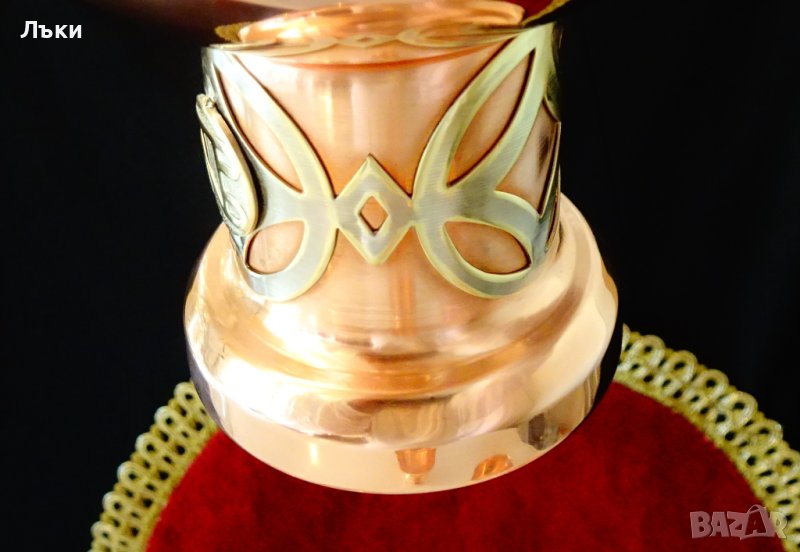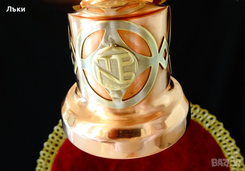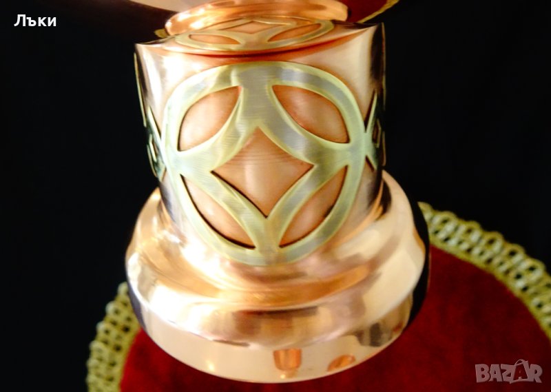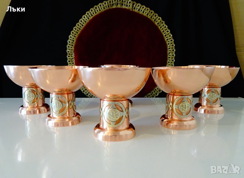 изработка от чиста червена мед с ослепителен огнен блясък и неповторим дизайн.Имат посребрена месингова апликация с логото на производителя или на поръчителя на