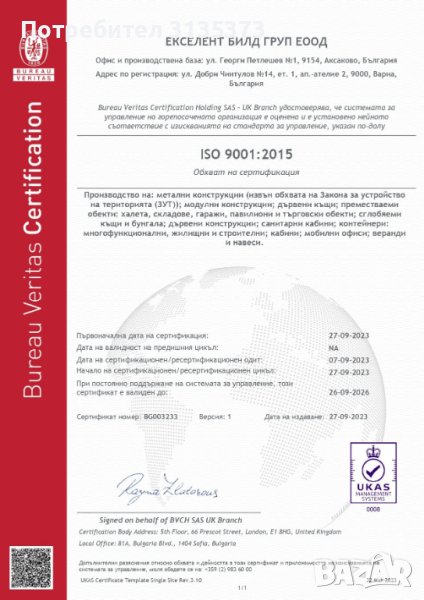 ”ЕКСЕЛЕНТ БИЛД ГРУП” е сертифициран Бърлгарски