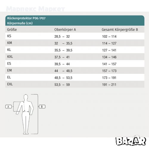 - CE одобрена защита на гръбначния стълб (EN 1621-2, Level 1)