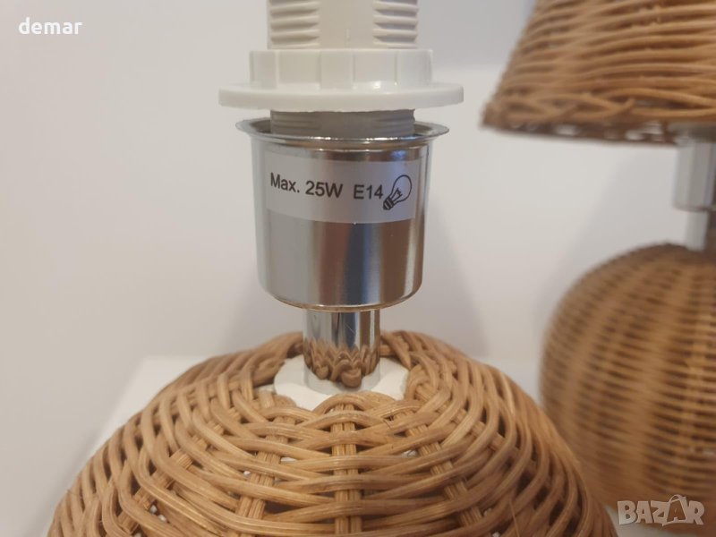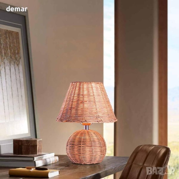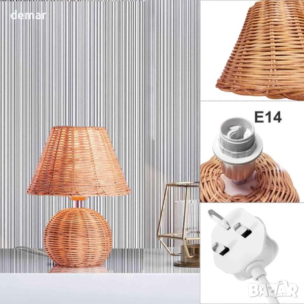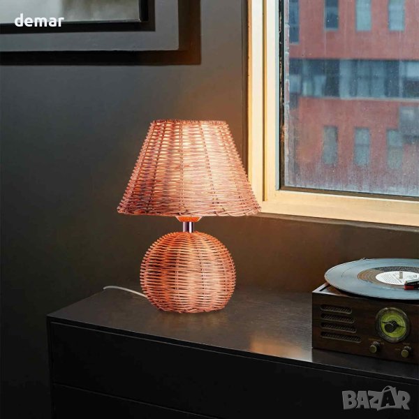 Екологична ратанова настолна лампа, ръчно плетен абажур, Е14, 2 броя
