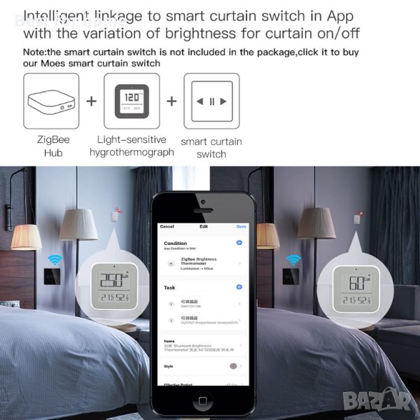 Smart Интелигентен Детектор за температура,влажност и осветление