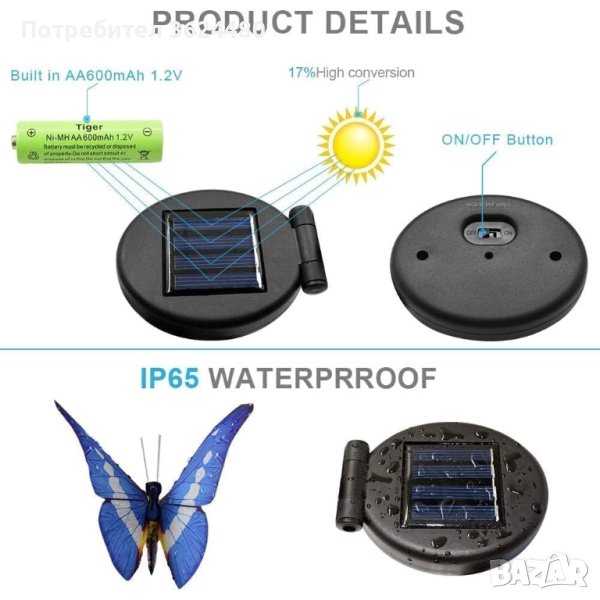 Размери на пеперудата: 11.5 х 11.5 см