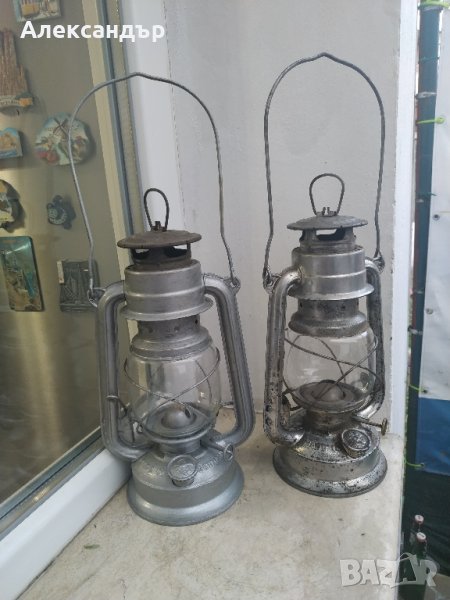Цената е за брой.Три броя немски фенери.Последната снимка(голям фенер)-25 лв.Стъкло за малък фенер 7 лв.