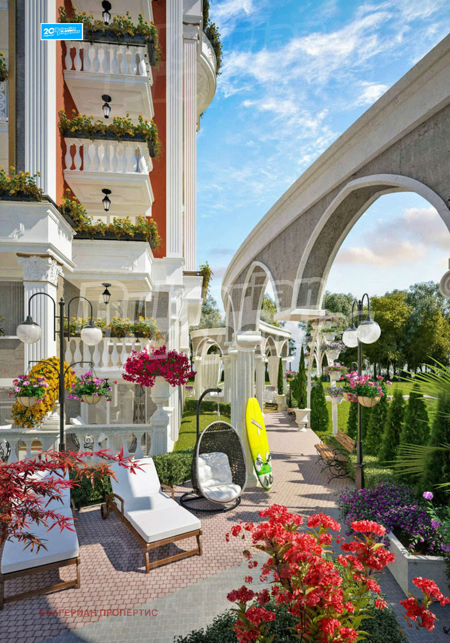 Великолепен ансамбъл с елегантен стил, съвременни идеи и визия смели геометрични форми, богатство на цветовете, разкош, скъпи и съвременни материали.