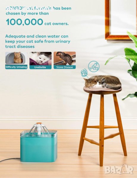 AONBOY Котешки фонтан, ултра тих фонтан за котки 2L, с LED светлина