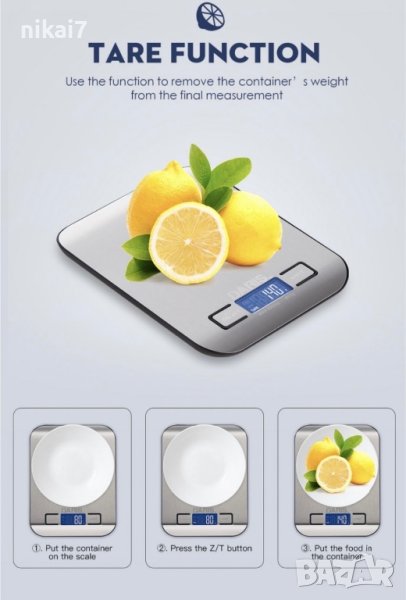 Лесен за използване само с два бутона, бързо измерване на нетното количество на продукта и лесно преобразуване на единици между g, oz, ml и Ib: измерване на oz; LCD екран с подсветка за видими показания.