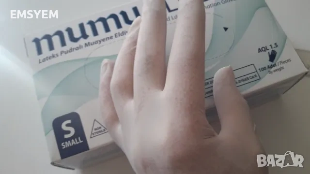 3.Ръкавици за еднократна употреба от латекс Mumu, 100 броя, налични 1 кутия, размер S - 1,20 евро